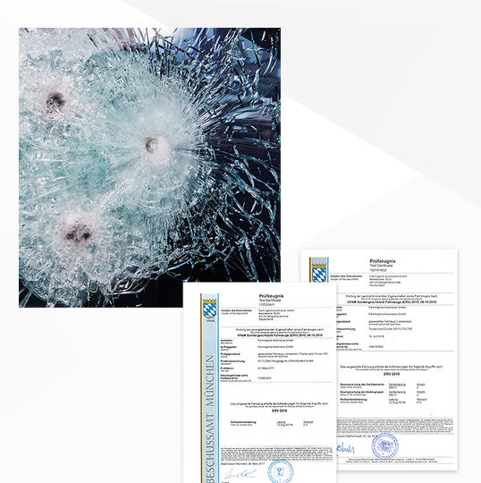 • Een bepantserd voertuig dat gereden kan worden met een normaal autorijbewijs. Dit dankzij de ultra lichte composiet materialen van de nieuwste generatie. Het originele ledig gewicht blijft ongewijzigd